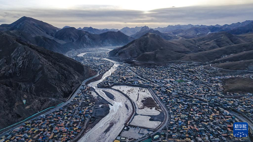 這是1月30日拍攝的青海省玉樹藏族自治州雜多縣冬景風(fēng)光(無人機照片)。(新華社記者 齊芷玥 攝)