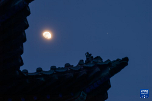 2月27日在黑龍江省齊齊哈爾市拍攝的木星伴月。(新華社發(fā) 王勇剛 攝)