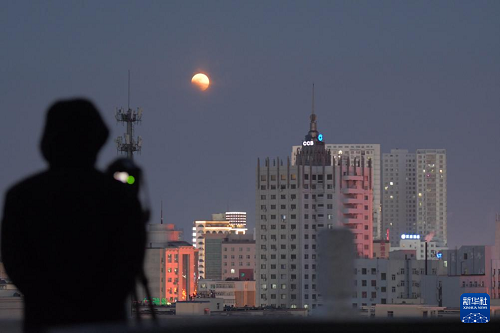 3月3日在黑龍江省齊齊哈爾市拍攝的月全食。(新華社發(fā) 王勇剛 攝)