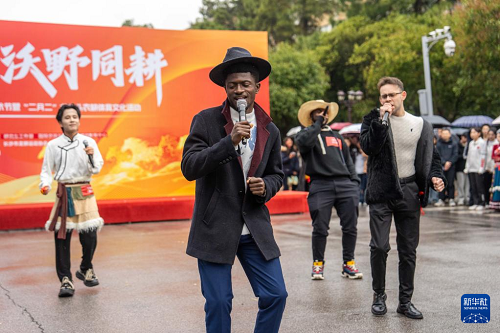 3月19日,湖南農(nóng)業(yè)大學(xué)留學(xué)生在農(nóng)耕體育文化活動(dòng)中唱歌。(新華社記者 陳思汗 攝)