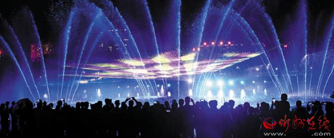 公園在注重園林、景觀建設(shè)的同時(shí),突出主題文化內(nèi)涵的展現(xiàn),湖水噴泉、觀賞果園、主題植物園、階梯花臺(tái)等特色園林具有觀賞性,園內(nèi)還配套建有遺山文化館、張拉膜廣場、健舞劇場、休閑茶吧、咖啡館等群眾休閑活動(dòng)場所,是又一惠及民生的心靈家園。圖為8月1日晚,市民在遺山公園噴泉廣場觀賞絢麗多彩的噴泉燈光秀。劉紀(jì)森 智芝龍 白曉明 胡 煒 攝
