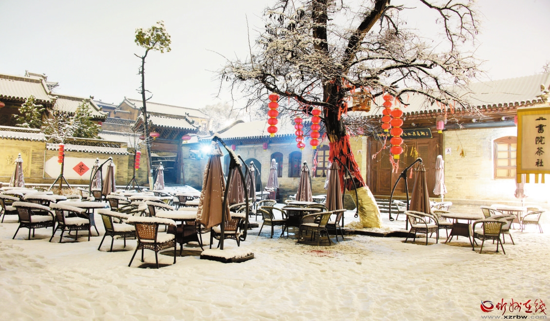 3月19日,我市普降瑞雪,雪后的忻州古城銀裝素裹,古建民居和燈火璀璨的夜景相互輝映,宛如畫(huà)卷。(趙晨善 攝)