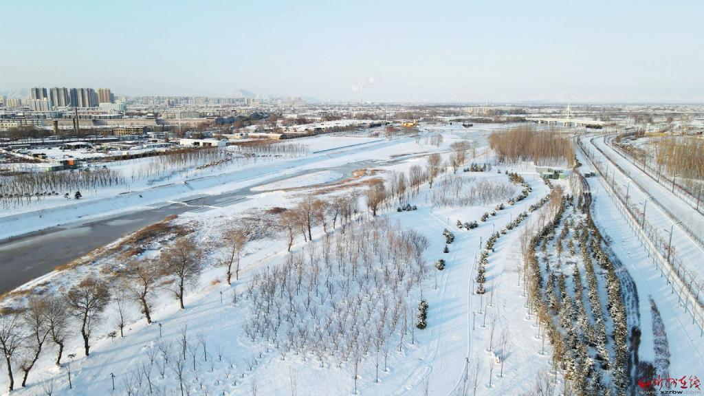 雪后的牧馬河生態(tài)公園,在白雪的覆蓋下,若隱若現(xiàn),美不勝收。(
