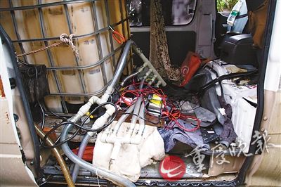 經(jīng)審訊,嫌疑人陳某曾因盜竊柴油被判入獄,在獄中認識張某、張某某。3人出獄后,在瀘州買了一輛二手福田面包車,經(jīng)過精心改裝并換上假牌照,往返于川渝兩地,在G93渝瀘高速各服務區(qū)專門盜竊貨車油箱里的柴油。偷油設備自動化,改裝車內(nèi)裝著好幾個大油桶,用一根塑料管,通過一個油泵,把貨車油箱里的油直接抽到桶里。油泵電源由蓄電池提供,為避免發(fā)動機聲音過大,油泵還用舊衣服層層包裹。馬力大的油泵,1分鐘就能把貨車滿滿一箱油抽光。為了更快抽油,嫌疑人甚至并聯(lián)4個大油泵。與以往拿著吸油管的小賊比,這樣的裝備偷油速度快10倍,比加油速度快幾倍。6月以來,該團伙僅在江津范圍內(nèi)就瘋狂作案20余起,盜得柴油5000余升,涉案金額數(shù)萬元。陳某落網(wǎng)當天,警方在面包車上查獲的1000余升柴油是陳某獨自在珞璜服務區(qū)連續(xù)作案5起盜得。