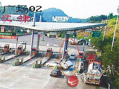 8月25日凌晨,民警接到線索,嫌疑車輛再次出現(xiàn)。民警馬上在渝瀘高速江津沿線進行蹲守。早上7時42分許,嫌疑車輛緩緩駛入渝瀘高速G93江津收費站,埋伏在收費亭內(nèi)的民警,試圖在嫌疑人停車繳費時將其控制。不料對方見勢不妙,啟動車輛準備沖卡逃跑。這時,另一隊蹲守在收費站外的民警立即將警車開到前方,把嫌疑車輛堵在收費車道內(nèi)。嫌疑人駕車對警車進行多次強烈撞擊,企圖撞開警車后逃竄,但均未得逞。隨后,嫌疑人又猛烈倒車,企圖撞開后方社會車輛。