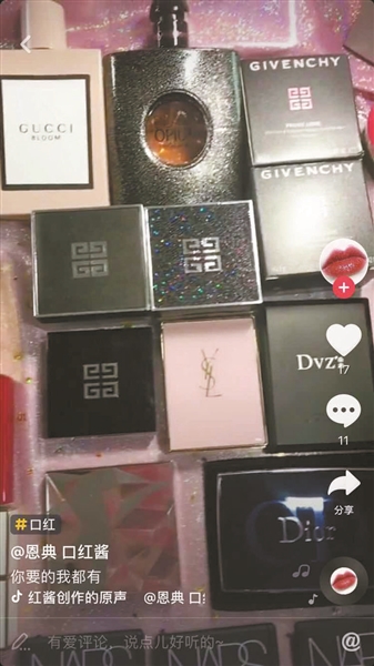 在另一個(gè)短視頻平臺(tái)上,一位主播展示了自己制作的各品牌口紅,有幾十只之多,都是知名的化妝品品牌。