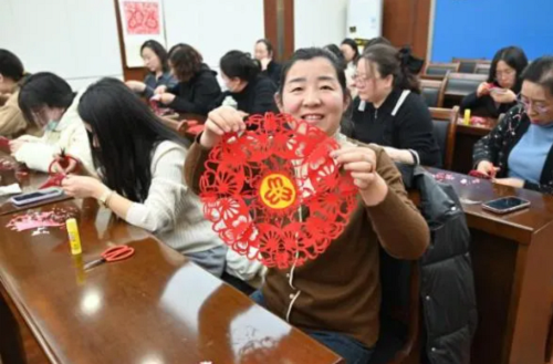 此次活動特邀五臺非遺剪紙傳承人王森煒現(xiàn)場教學,從折疊技巧到紋樣設(shè)計,從鏤空雕刻到細節(jié)精修,干警們在老師的指導下沉浸式感受剪紙藝術(shù)的魅力。紅紙翻飛間,一幅幅寓意幸福吉祥、展現(xiàn)女性力量的剪紙作品逐漸成型。指尖流淌的不僅是傳統(tǒng)技藝,更是檢察女性剛?cè)岵?、匠心獨運的精神底色。