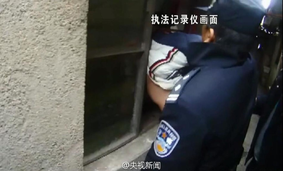 江蘇一笨賊作案被卡窗戶 民警救人又抓賊