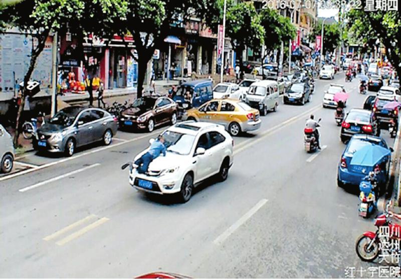 一輛白色的比亞迪轎車,載著一車乘客在市區(qū)橫沖直撞,并以時(shí)速50公里左右的速度,將一名執(zhí)法人員撞上引擎蓋,推行了300多米。緊接著,該轎車來(lái)了一個(gè)急轉(zhuǎn)彎,把執(zhí)法人員甩下地面后繼續(xù)逃跑……7月7日,電影中的“速度與激情”,在達(dá)州市大竹縣城真實(shí)上演。