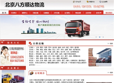由于時間緊急,平常聯絡的物流公司暫時沒車,配送不了。當天,該公司的行政人員從網絡上搜索武漢到北京的物流專線,發(fā)現一家名為“八方順達物流”的公司,紅色主頁的網站上,顯示有客服電話、物流、接單、登記、調用安排、在途追蹤等具體信息。