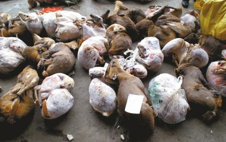 7個(gè)熊頭,其中3個(gè)已經(jīng)燙掉毛皮;大小熊掌共計(jì)11只;3個(gè)鱷魚掌;一堆鷹類尸體……地上的珍稀動(dòng)物死體幾乎壘成一座小山,而這只是本案中起獲的動(dòng)物死體的一部分。