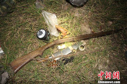 3月27日凌晨,云南省西雙版納州森林公安局勐臘派出所的民警接到群眾匿名電話報(bào)案稱:“在勐臘縣南貢山國(guó)家級(jí)自然保護(hù)區(qū)內(nèi)有人在打獵”。接到報(bào)案后,勐臘派出所立即組織民警前往案發(fā)地點(diǎn)調(diào)查。凌晨1時(shí),民警剛到山腳,就聽(tīng)到了山上的保護(hù)區(qū)內(nèi)傳來(lái)槍響。隨即,民警在進(jìn)出保護(hù)區(qū)的出入口秘密布控,等待狩獵者歸來(lái)。隨著時(shí)間一分一秒的流逝,在出入口蹲守了近一個(gè)小時(shí)后,民警仍然沒(méi)有發(fā)現(xiàn)狩獵人員蹤跡,甚至連槍聲都沒(méi)有再響過(guò)。為了防止狩獵人員從其它出口逃離,民警決定兵分兩路,一組人繼續(xù)在出口蹲守,另一組人進(jìn)入保護(hù)區(qū)搜查狩獵者蹤跡。因擔(dān)心狩獵者看到亮光躲藏起來(lái),進(jìn)入保護(hù)區(qū)的搜查組民警關(guān)閉手電,摸黑進(jìn)山搜查。