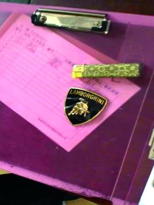 ▲圖為李某摳掉的蘭博基尼車標。