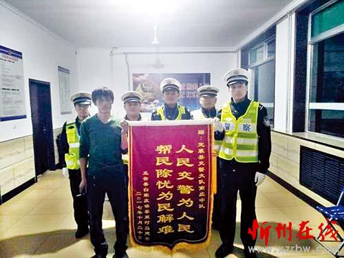 本報訊10月20日,五臺縣白家莊鎮(zhèn)寨里村村民馬某,給定襄縣交警大隊南莊中隊贈送了一面錦旗,上寫:“人民交警為人民,幫民除憂為民解難”,對南莊中隊民警快速出警,及時救助因失控而掉入深溝的貨車駕駛人脫離危險表示感謝。