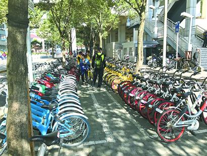 “像‘分蛋糕’一樣,按照各企業(yè)在這個區(qū)域的投放總量,在非機動車停車區(qū)按比例劃分出大致的停放位置,再由各企業(yè)派駐人員根據實際需求現場協(xié)調停放。也預留了一塊區(qū)域,滿足各類社會非機動車輛的停車需求?!标愔姓f,現在各共享單車企業(yè)的管理員從每天早上6時30分到晚上8時30分駐點管理,西江灣路區(qū)域的共享單車停放已實現規(guī)范、有序。