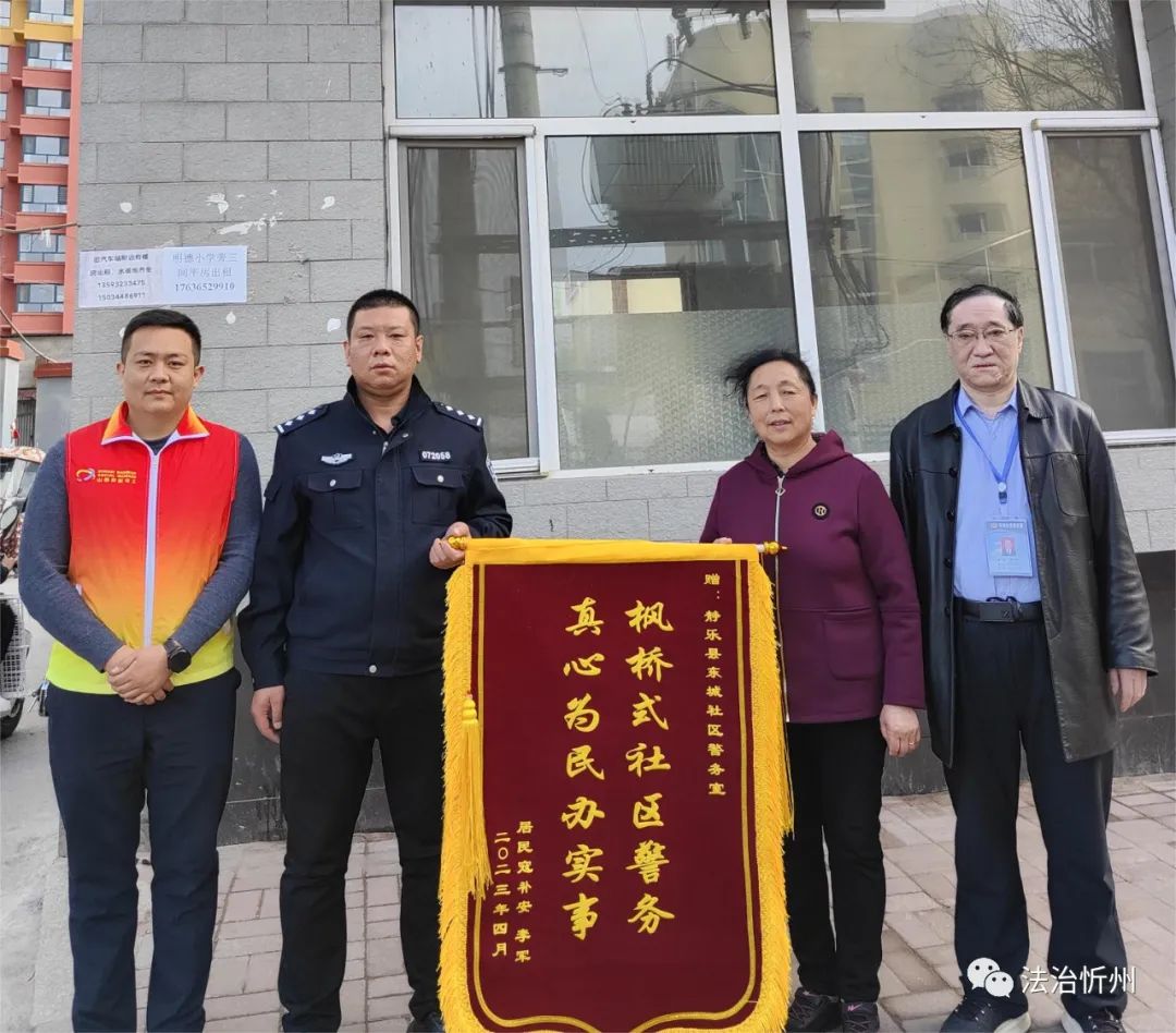 在東城社區(qū),寇某和李某因宅基地糾紛素有積怨,多次到縣政府上訪,但未能得到有效解決。東城社區(qū)警務室工作人員在摸排中掌握這一情況后,主動上門了解,但吃了數(shù)次閉門羹,工作開展一度受阻??h公安局黨委及時抽調(diào)其他警務室與雙方當事人熟識的兩名老同志加入調(diào)解隊伍。同志們白天跑、黑夜跑,終將雙方領到調(diào)解桌前。經(jīng)十余次調(diào)解,雙方握手言和,達成諒解。事后,當事人還將一面寫有“社區(qū)警務就是好”的錦旗送到了警務室。