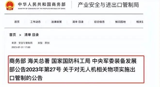 7月31日中國宣布強(qiáng)化無人機(jī)出口管制