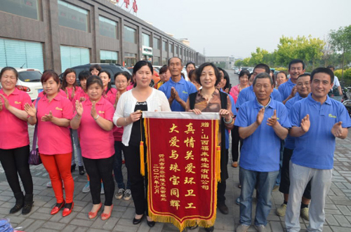 六月七日,忻州知名企業(yè)“山西福來(lái)珠寶有限公司”,向忻州市環(huán)衛(wèi)處全體環(huán)衛(wèi)工人捐贈(zèng)1300件價(jià)值近五萬(wàn)元的T裇衫,供環(huán)衛(wèi)工人夏季作業(yè)避暑,同時(shí)呼吁社會(huì)各界愛護(hù)環(huán)境衛(wèi)生,關(guān)愛環(huán)衛(wèi)工人。市環(huán)衛(wèi)處處長(zhǎng)石建新、副處長(zhǎng)張林霞一同出席捐贈(zèng)儀式,并代表市環(huán)衛(wèi)處向山西福來(lái)珠寶有限公司回贈(zèng)錦旗,以示感謝。