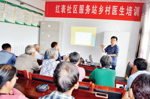 本報訊 7 月15 日,忻州市中醫(yī)院主任醫(yī)師、心病科專家張崢,來到五臺縣陽白鄉(xiāng)衛(wèi)生院紅表社區(qū)服務站,為鄉(xiāng)村醫(yī)生、村民、患者進行慢性病防治健康知識宣傳教授。課上,他向鄉(xiāng)村醫(yī)生重點講授了冠心病的分類、預防、臨床表現,詳細介紹了高血壓、冠心病治療的臨床經驗,受到了大家的一致好評。