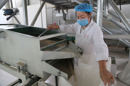 7月22日,靜樂(lè)縣華青藜麥產(chǎn)品開(kāi)發(fā)有限公司的員工在篩選藜麥產(chǎn)品。這個(gè)綜合性農(nóng)業(yè)開(kāi)發(fā)企業(yè),堅(jiān)持走“企業(yè)管理+種植基地”的運(yùn)作模式,積極推動(dòng)藜麥、小雜糧等規(guī)模化種植經(jīng)營(yíng),成為當(dāng)?shù)貛ьI(lǐng)農(nóng)民致富的龍頭企業(yè)。(閆曉梅 攝)