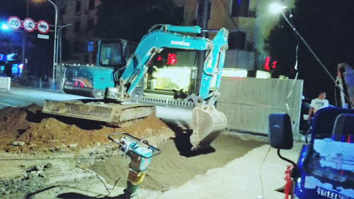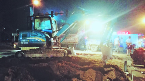 7月26日晚上9多了,原平市政公司干部職工仍然在京原北路與平安大街交匯的十字路口搶修塌陷的路面。該路段是原平的交通要道,車流量大。路面塌陷后,時(shí)政公司及時(shí)安排連夜切段搶修,不誤車輛通行,把“真抓實(shí)干,馬上就辦”體現(xiàn)在實(shí)際行動(dòng)中。(吉建平 攝)