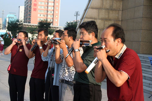 7月30日,原平市口琴協(xié)會演奏人員正在廣場上給觀眾演奏精彩的口琴技藝,深受群眾歡迎。該市注重文化建設(shè),活躍群眾文化生活多姿多彩。(趙春曉 攝)