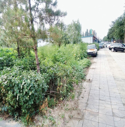 隨著我市城市建設(shè)工作的不斷推進,城區(qū)環(huán)境有了新的變化。新修的道路寬敞整潔,道路兩旁的花草苗木將城市點綴得亮麗多彩。然而,在新建北路一側(cè),卻難尋綠化蹤跡,瘋狂生長的野草“霸占”了近500米的地帶,與周圍的優(yōu)美環(huán)境格格不入。