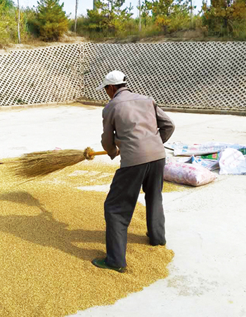 9月25日邢巧珍的丈夫在晾曬莜麥