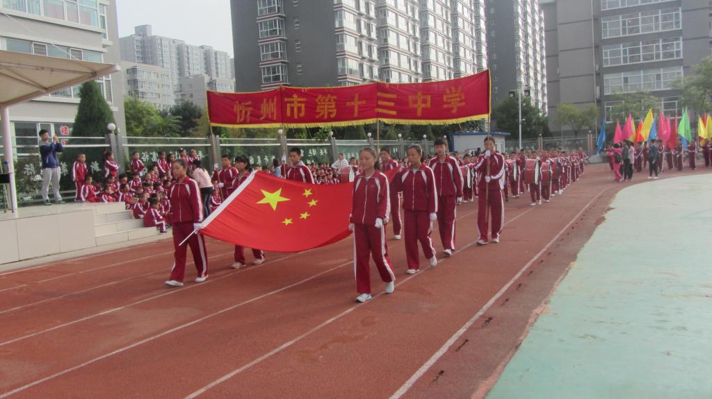 沐浴著秋天的朝陽(yáng),享受著清爽的秋風(fēng)。9月28日上午,忻州市第十三中學(xué)第十一屆秋季運(yùn)動(dòng)會(huì)開(kāi)幕式在學(xué)校操場(chǎng)隆重舉行。伴隨著激昂的運(yùn)動(dòng)員進(jìn)行曲,國(guó)旗隊(duì)、鼓樂(lè)隊(duì)、彩旗隊(duì)、裁判員代表和運(yùn)動(dòng)員方隊(duì)秩序井然而又氣勢(shì)磅礴地走入會(huì)場(chǎng)。在莊嚴(yán)的國(guó)歌聲中,全體師生凝神肅立,齊唱國(guó)歌。鮮艷的五星紅旗在操場(chǎng)上冉冉升起。