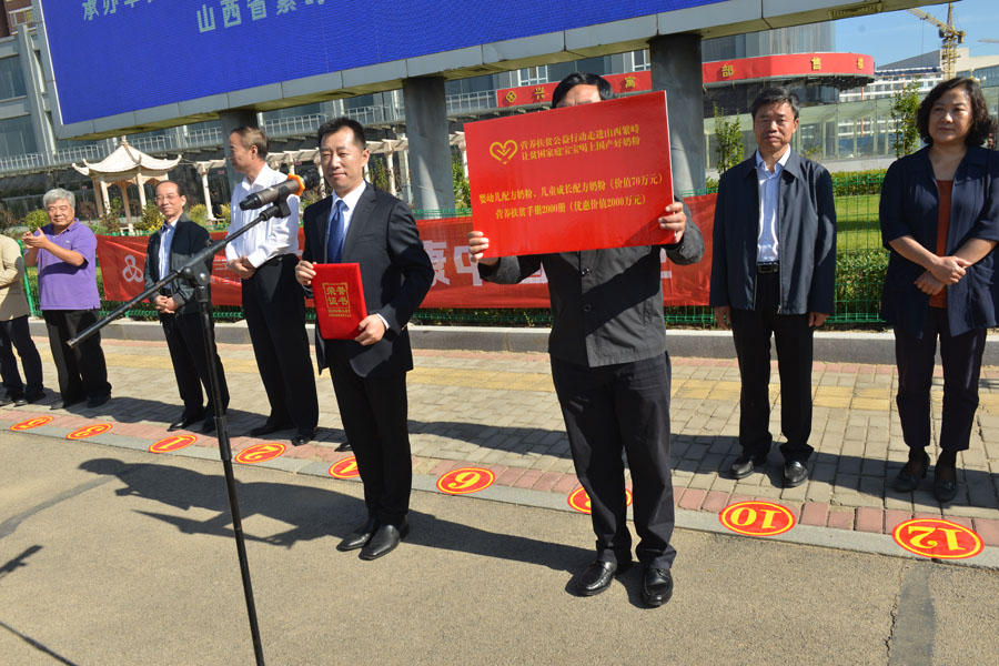 活動(dòng)現(xiàn)場(chǎng) 近日,中國(guó)農(nóng)村雜志社和省人防辦在繁峙縣濱河公園舉行了“營(yíng)養(yǎng)扶貧公益行動(dòng)走進(jìn)山西繁峙——讓貧困地區(qū)寶寶喝上國(guó)產(chǎn)好奶粉”公益活動(dòng)。北京三元食品股份有限公司向繁峙縣貧困家庭代表、雙胞胎家庭代表現(xiàn)場(chǎng)捐贈(zèng)了價(jià)值70萬(wàn)元的三元奶粉和2000冊(cè)營(yíng)養(yǎng)扶貧手冊(cè)。這也是省人防辦在扶貧聯(lián)系點(diǎn)繁峙縣舉行的扶貧公益活動(dòng),旨在用實(shí)際行動(dòng)帶給貧困地區(qū)兒童溫暖與關(guān)愛,同時(shí)喚起社會(huì)對(duì)貧困地區(qū)兒童成長(zhǎng)發(fā)育的關(guān)注。