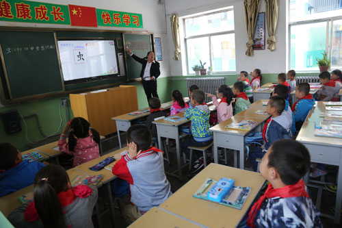 近日,在靜樂(lè)縣愛(ài)樂(lè)希望小學(xué),學(xué)生正通過(guò)交互式多媒體教學(xué)方法上課。老師高興地說(shuō):“有了多媒體真方便,以前講一個(gè)例題要花幾分鐘抄寫在黑板上,現(xiàn)在只需幾秒鐘就顯示在頻幕上,既節(jié)省時(shí)間又提高課堂效率?!苯陙?lái),該縣加大教育投資力度,改善辦學(xué)條件,為學(xué)生上課提供便利。(閆曉梅 攝)