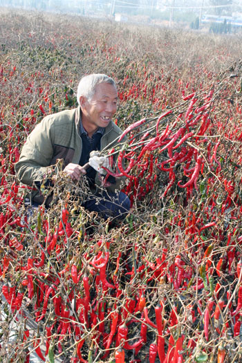 11月3日,原平市南灘村農民正在查看種植的北京紅辣椒準備采摘。該村調整產業(yè)結構,由原來種植玉米地,如今引進種植了新品種北京紅辣椒,長勢喜人促進農業(yè)增產農民增收,老農高興地說俺們如今靠黨的好政策,生活就像紅辣椒一樣過的紅紅火火。(趙春曉 攝)