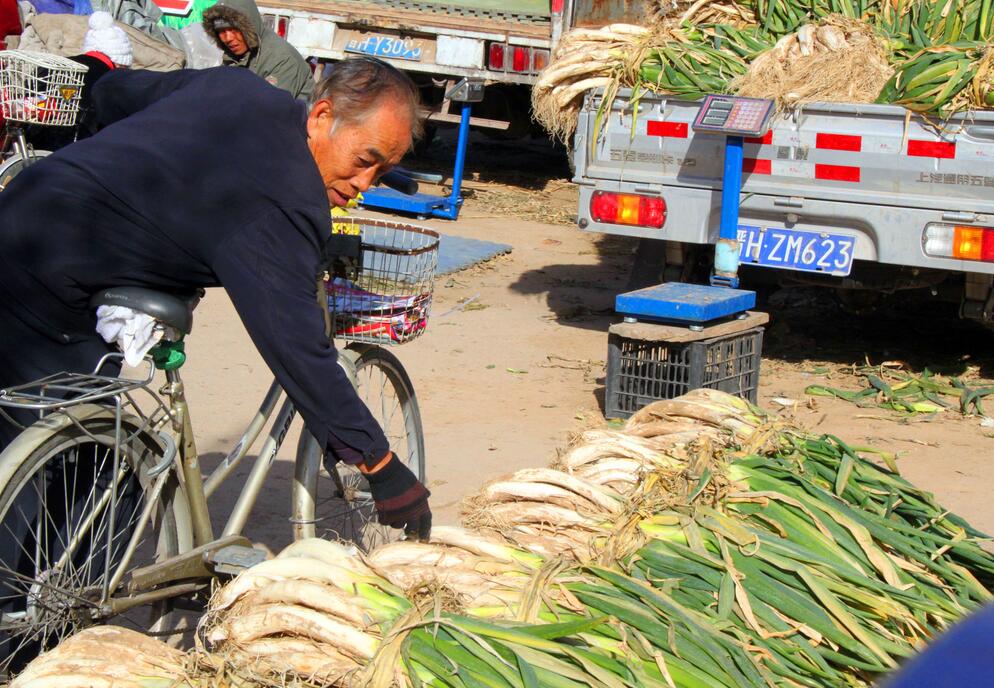 11月10日,原平市青年街農(nóng)貿(mào)市場(chǎng)紅紅火火十分熱鬧,市民們正在挑選購(gòu)買(mǎi)冬儲(chǔ)菜,土豆、蘿卜、大白菜、大蔥等。該市大力發(fā)展一村一品種植業(yè),有力投放市場(chǎng),滿足市民需求,也增加農(nóng)民收入。(趙春曉 攝)