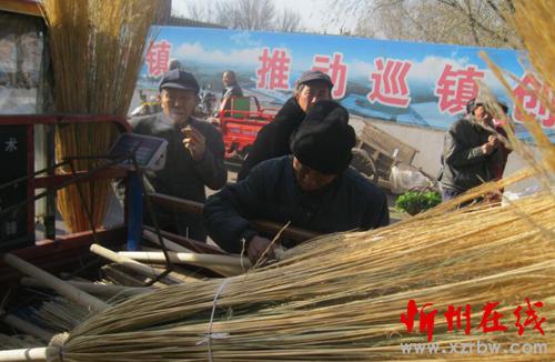 冬閑季節(jié),河曲縣農(nóng)民千方百計(jì)開辟增收門路,民間形式的冬季行動(dòng)正在升溫。夏營(yíng)村農(nóng)民利用俗稱“直芨”的芨芨草手工制作大掃帚,分量足、扎得牢,而且承諾“吊頭一把換兩把”,解決了群眾為“吊頭”而煩惱的后顧之憂,吸引群眾前來選購。圖為11月27日在巡鎮(zhèn)趕集的群眾選購“直芨”大掃帚。(賈金理 攝)