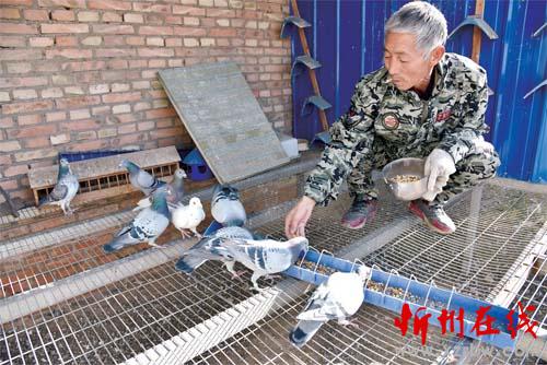 鐵礦老板柳國(guó)榮、高建峰于去年1月返鄉(xiāng)創(chuàng)辦了投資300萬(wàn)元的代縣雁門順?lè)逍砒濔B(yǎng)殖場(chǎng)。該場(chǎng)每年消耗飼料高粱、玉米、豌豆等20多噸,可有效帶動(dòng)當(dāng)?shù)氐男‰s糧種植,助推貧困農(nóng)民脫貧增收。圖為飼養(yǎng)員正在喂養(yǎng)信鴿。(石俊文 攝)