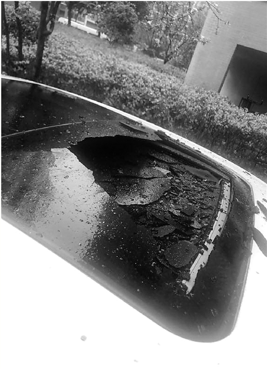 李師傅掏出手機(jī),給錢(qián)報(bào)記者看了當(dāng)時(shí)車(chē)子被砸的照片:“你看,這個(gè)車(chē)子頂部都被砸出一個(gè)窟窿。真的是缺德,車(chē)頂都被砸穿了!”