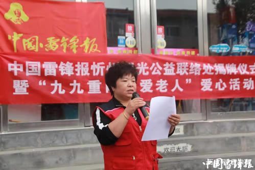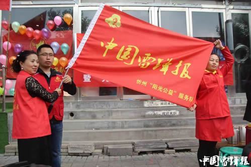 儀式上,中國雷鋒報忻州工作站副站長溫曉軍為陽光公益聯(lián)絡(luò)處揭牌,副站長李杰慧為陽光公益服務(wù)隊授隊旗。
