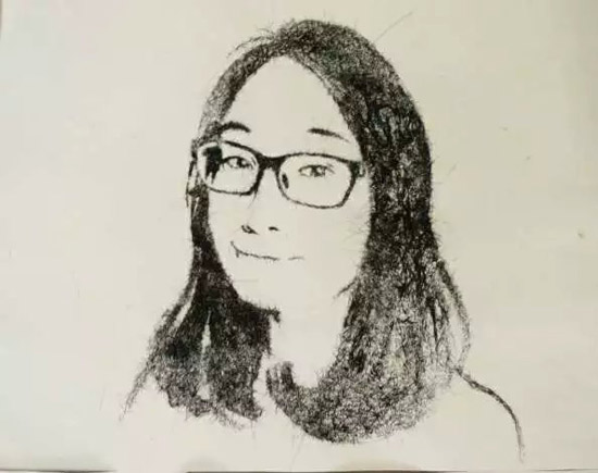 為鼓勵重病好友 美術(shù)生剃光頭用頭發(fā)作畫