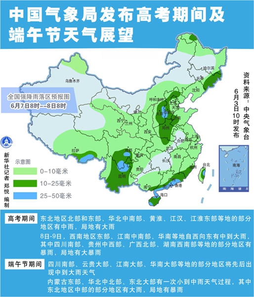 中國(guó)氣象局發(fā)布高考期間及端午節(jié)天氣展望