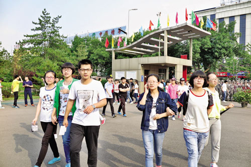 圖為6月6日下午5時,忻州一中考點的考生們進入校區(qū),確認、熟悉考場環(huán)境。