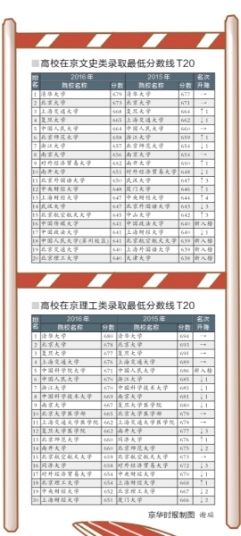 從2015年和2016年錄取線可以看出,清華已經(jīng)連續(xù)兩年超越北大領(lǐng)跑各高校。比如去年,清華大學(xué)在京文科錄取最低分為677分,比北大高出6分;理科錄取最低分為694分,比北大高1分。