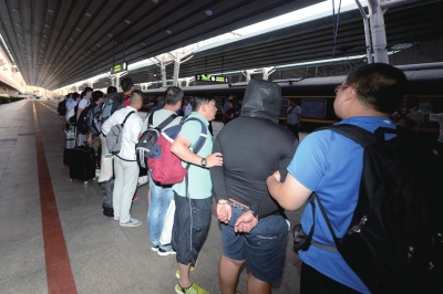 8名嫌疑人被押解回京。京華時報記者 趙思衡 攝