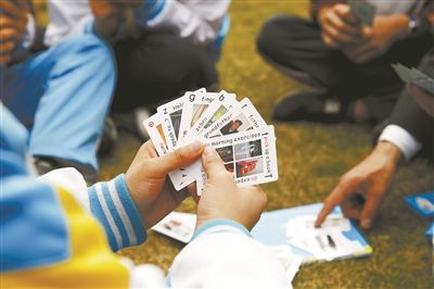 學(xué)生們在玩田精耘發(fā)明的“英語撲克”。劉磊 攝