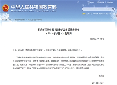 目前學校實行的相關體測標準依據(jù)的是2014年教育部印發(fā)的《國家學生體質健康標準》。 網絡截圖