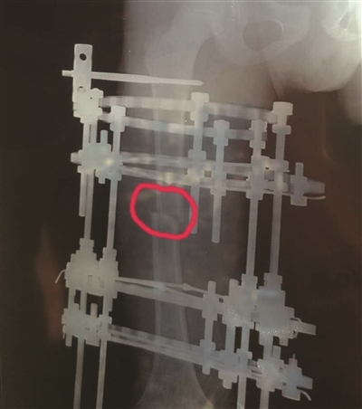 牽引架將斷骨處拉開,3個月增加近8厘米。