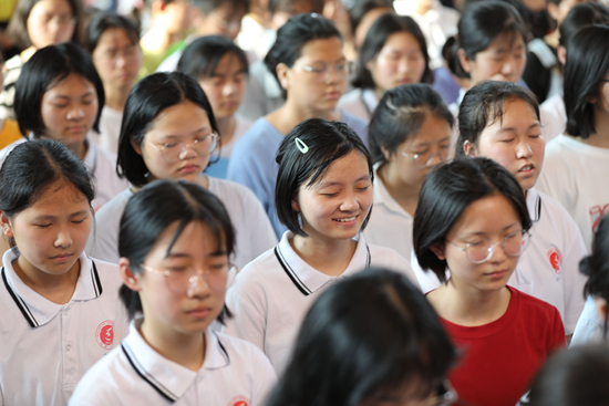 6月28日,湖南永州道縣第一中學(xué)學(xué)生在緊張準(zhǔn)備高考的同時(shí),參加心理講座,開(kāi)展快樂(lè)減壓活動(dòng)。視覺(jué)中國(guó)供圖