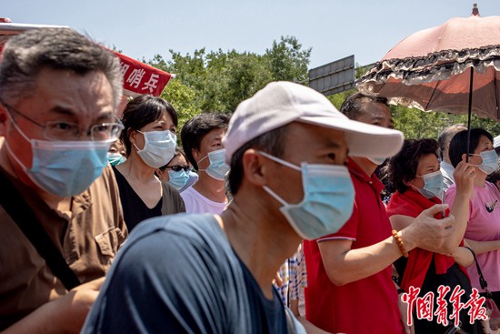 7月7日上午,北京市第八十中學(xué)門口,高考語文考試結(jié)束后,等待考生的家長(zhǎng)們。中青報(bào)·中青網(wǎng)記者 李雋輝/攝