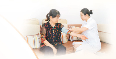 盛思敏入戶為居民測量血壓。