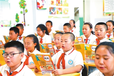 敦煌市東街小學(xué)學(xué)生在課堂上誦讀《涼州詞》。中國(guó)教育報(bào)記者 尹曉軍 攝