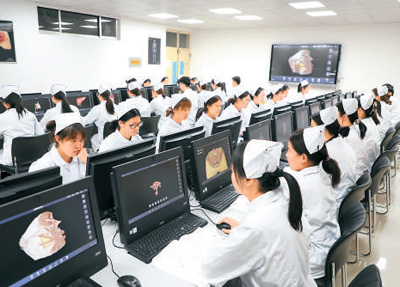 醫(yī)學(xué)技術(shù)與護(hù)理系學(xué)生運(yùn)用人體解剖虛擬仿真資源進(jìn)行自主學(xué)習(xí)。